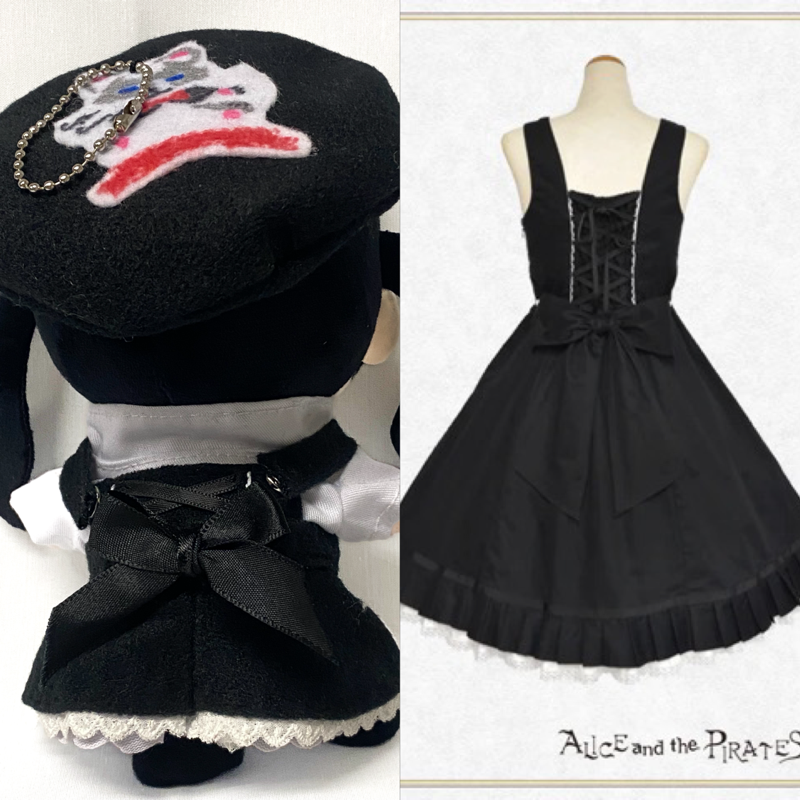 このロリィタ服はブランドのマスコットが大きくデザインされている。ネコかと思ってたらキツネらしい。【海賊+ロリィタ】がコンセプトの姉妹ブランド”ALICE and the PIRATES””通称アイパイ”のキャプテン・クリスと言うらしい。絶対に買いもしないのにロリィタブランドの知識が増えていく。